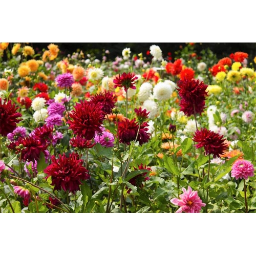 karışık renkli dahlialar 10 - 15 santim büyüklüÄŸünde açan içerisinde ponpon - kaktüs - decoratif ve anemon çeÅŸitlerini barındırır